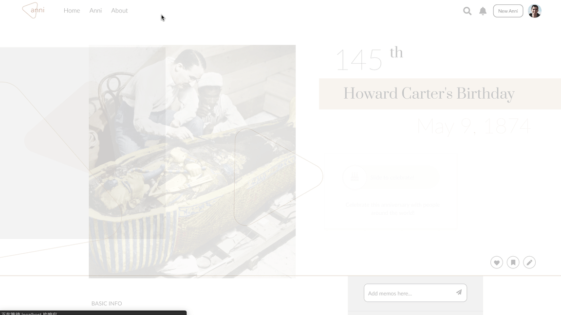 On the homepage, a slideshow is showing the most popular anniversaries. Below are popular and upcoming anniversaries where user can get quick access to. The “Popular on Anni“ module also shows numbers of comments, likes, and bookmarks, as well as most popular comments.